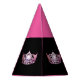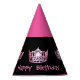 Party hat is shown in Pink and Black with a pretty gleaming crown along with text saying Happy Birthday.