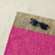 This beach towel is shown in a fun faux Glitter print in Pink. Center has subtle "faded" look. Ends in Gold faux glitter color.