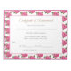Created from an autograph pad, this stack of certificates of achievement would be a great enhancement for your organization or pageant to hand out to multiple entrants or qualifiers. A lovely way to show support and congrats to all those for entering. Shown with borders of pink roses with a light golden-color of "certificate of achievement" at top beneath roses and all the corresponding text you would need on white with gray text body. Has inner thin border of pink. Must Customize the center text area of this item.