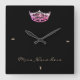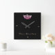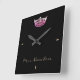 Choose between round or square styles of this gorgeous and sleek clock with pretty details and crown image along with text for you to customize with name or pageant title. Black and Pink crown only.