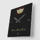 Choose between round or square styles of this gorgeous and sleek clock with pretty details and crown image along with text for you to customize with name or pageant title. Black and Yellow crown only.