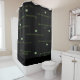 Shower curtain shown in Black with a print of a bevy of gleaming Green crown prints. Uplifting and encouraging messages in coordinating Green text. Customize this item or buy as is.