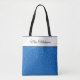 This tote bag is shown with a fun faux Royal Blue glitter print. Has a White band at top with your personalized title, name or favorite phrase.