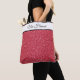This tote bag is shown with a fun faux Red glitter print. Has a White band at top with your personalized title or name on it. Double side design.