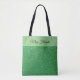 This tote bag is shown with a fun faux Green glitter print. Has a lighter Green band at top with your personalized title, name or favorite phrase.