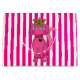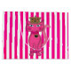 Miss Kitty, Pink Glitter 3s-GIFT BAG-It’s a whimsical pink glittered kitty cat with coordinating collar and ankle bracelets. She has big blue eyes and pink blush on her cheeks. She wears a decorative gold crown with of lots of jewels and pretties. The collar and bracelets are pink with black and gold brads. A black and gold heart embellishment hangs from her collar. Miss kitty is sure to put a smile on the face of kitty and cat lovers of all ages. This design is available as a single cat as shown here as well as an allover background pattern with assorted backgrounds. The kitty is on both sides of the gift bag.