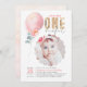 Miss Onederful Pink Balloon 1st Birthday Photo Invitation