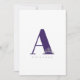 This flat note card/invitation has a personalized monogram on the front with a small-sized tiara inside the deep Purple monogram with your last/or first name beneath. Backside has a solid color border of your choice. Border color shown in deep Purple.