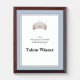 Soft hues of blue-gray, white and putty colors form this lovely award edged in wood. Double borders surround your personalized text with a Silver crown perched above the text.