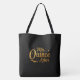 This shoulder tote bag is shown with a Quinceanera gold glittery print design.