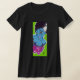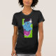 I love wearing a reprint of my colored pencil drawing of Annie the cat looking over the hillside. My illustration is based on a picture I took of Annie the manx cat. The printing turned out lovely, and the shirt is soft and thick. The American Apparel shirt run on the smaller size, so I always order a large or extra large.