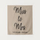 custom miss to mrs backdrop, personalized bridal shower photo prop, personalised bach booth back drop, boho bachelorette party sign decor, hen do weekend trip decorations, future girly bride wedding tapestry, fiancée photobooth for her banner, luncheon brunch tea bash celebration, ladies engagement girls night out, tan sand black to be