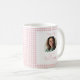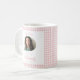 Miss To Mrs Mug, this Modern Boho Bridal mug is the perfect mug for bridesmaids. Perfect for the Future Mrs Bridal Shower Party. A gift for any Reception or any Backyard Wedding. It features a photo of the bride to be and a cute boho gingham pattern.