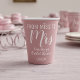Dusky blush pink bridal shower paper cups with space for your name and bridal shower party details.
