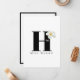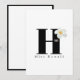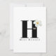 This lovely flat style note card has a big, bold monogram in the middle. Inside of the monogram is a silver-tone crown image and along the side of the monogram is a lovely plumeria flower. Your last or first name beneath the monogram. Backside has colorful border of black. Custom text for you to personalize is shown in "H" and