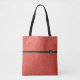 This tote bag is shown with a fun faux Orange-Red glitter print and a black stripe between top and bottom with a small Silver crown as if it were a buckle on stripe.