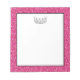 Notepad shown with a fun faux Pink glitter border edges and a single medium-large sized black and white crown at the top. White space in center for you to jot down your messages.