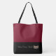This cute stylish large tote bag is shown in an Crimson and Black color block style with a pageant crown and custom text.