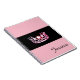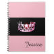 Notebook shown with a photo print of a gleaming Pink colored crown print on a black background and a personalized name. Notebook shown in Pink. Customize this item and change the name to yours or take off, or purchase as shown.