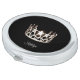 Mirror compact shown in oval shape with a gleaming Silver crown print. Personalized name beneath crown in coordinating color.