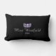 Lumbar style pillow shown in Black/Dove grey with a print of a Silver-Blue Miss America type crown with formatted text for you to personalize with your own. A nice gift for Miss Congeniality too. Customize this item.