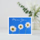 Let someone special know how much you miss them with this sweet floral daisy postcard. The postcard features white daisies on a sky blue background.