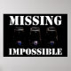 Missing Impossible. Closeup view of three overturned shot glasses with dices, tiles or dies inside each glass. Isolated against black background.