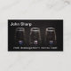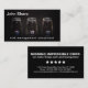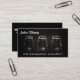 Three transparent glasses with dices inside. Impossible to miss and lose. Risk management consultant unique and funny business card. Name and job title on the front, company name, mission, contact info on the back. Black background. Fully customizable. You can change two images and you can change or delete all the texts. Have fun and make a pack for yourself or as a gift!