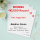 Missing Person Custom Photo Reward Red Black Flyer