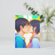 Sweet innocent anime kiss between a boy and girl cartoon art. Missing you postcard.