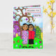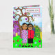 Thinking of you and missing you card for a friend. Whimsical hand drawn art folk style whimsical flowers, tree and friends.