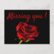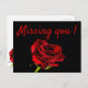 A romantic "Missing you" postcard with a beautiful red rose on black. The text is customizable. Surprise your partner or loved one with a card like this.