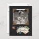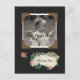 A missing you photo postcard with a vintage style black paper scrapbook page with old fashioned photo corners and a floral ribbon that says: Missing you. Custom text can be personalized.
