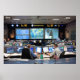 Flight director Tony Ceccacci (left) and astronaut Dan Burbank, STS-125 spacecraft communicator (CAPCOM), monitor data at their consoles in the space shuttle flight control room in the Mission Control Center at NASA's Johnson Space Center during flight day three activities. The Hubble Space Telescope, grappled by Space Shuttle Atlantis' remote manipulator system (RMS), is visible on one of the big screens.