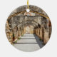 Unique 2 sided ceramic ornament featuring Mission San José on the front and the arched walkway of the courtyard on the reverse. Change the year date to the current date.