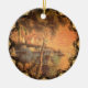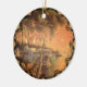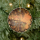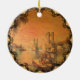 Reprint of a and lithograph showing the Mississippi River with steam ships, rafts, and sailing boats on a summer's eve. Reprinted on this beautiful Christmas ornament with Victorian filagree trim.