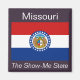An authentic premium quality image of the flag of Missouri set between the state name and nickname over a flag-color background.