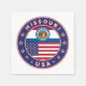 Badge of Missouri with flag of Missouri and flag of USA colors, rounded shape.