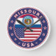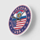Badge of Missouri with flag of Missouri and flag of USA colors, rounded shape.