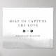 Designed to match our Mist wedding collection, this elegant yet simple sign lets guests know about your custom wedding hashtag for social media sharing. Personalize the header and hashtag (shown with "Help Us Capture the Love") over a sheer wash of pale grey watercolor. Includes two social media icons joined by a heart.