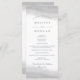 Our elegant wedding program features your ceremony details in rich off-black charcoal, accented with sheer grey watercolor washes at the top and bottom. Reverse side lists the members of your wedding party with easily editable text fields. Coordinates with our Mist wedding invitation collection.