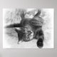 Black and white illustration from photo of cat lying on couch