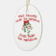This cute Christmas ornament features bunch of mistletoe tied with a red ribbon and caption “What happens under the mistletoe stays under the mistletoe.”