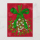 "Mistletoe Greetings." Postcard is a Photoshop painting of Mistletoe wrapped with a green ribbon on a red background. I hope you enjoy it.