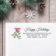 This festive return address label is decorated with watercolor mistletoe, berries, ribbon, and Happy Holidays in elegant script typography.