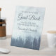 This beautiful pedestal sign will invite your wedding guests to sign your guest book. Features a rustic yet elegant design with a mountain landscape of blue spruce or pine trees shrouded in mist or fog. There is space for the names of the couple as well as the wedding date. Perfect for an outdoor, winter, or alpine destination ceremony.