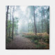 This photo features a pathway through a dark foggy wood in Norfolk, UK.