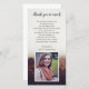 Photo thank you card for a memorial service featuring a misty autumn landscapes with trees in orange and brown.
