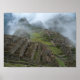 The famous ruins of Machu Picchu in mist, as hikers see from the Inca Trail. This is the most famous archeological site from the Inca World. In July 2007 Machu Picchu was elected one of the New 7 Wonders of the World.