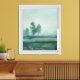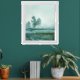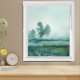 A modern, moody, misty meadow with single tree. Print from a dry brush watercolor painting print. Ethereal, minimalist. Choose your frame style and color. Blue green hues.